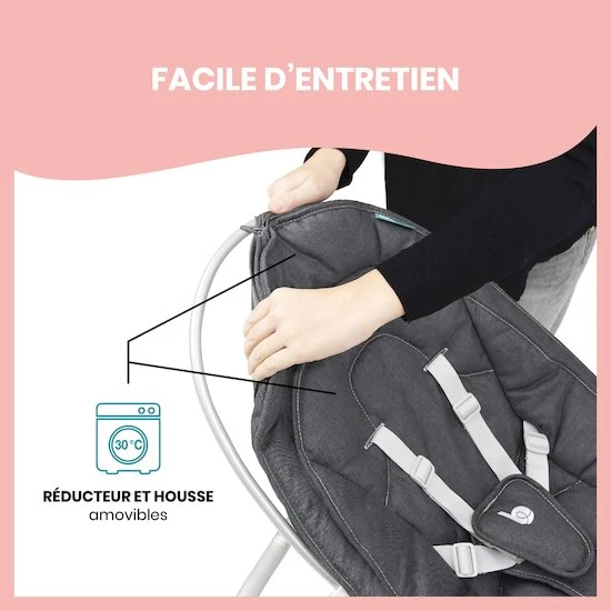 La housse et le réducteur amovibles se lavent en machine à 30°.