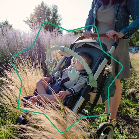 - Universelle, elle s’adapte à tous les supports : sur une poussette, un transat, une balalncelle ou un siège-auto.