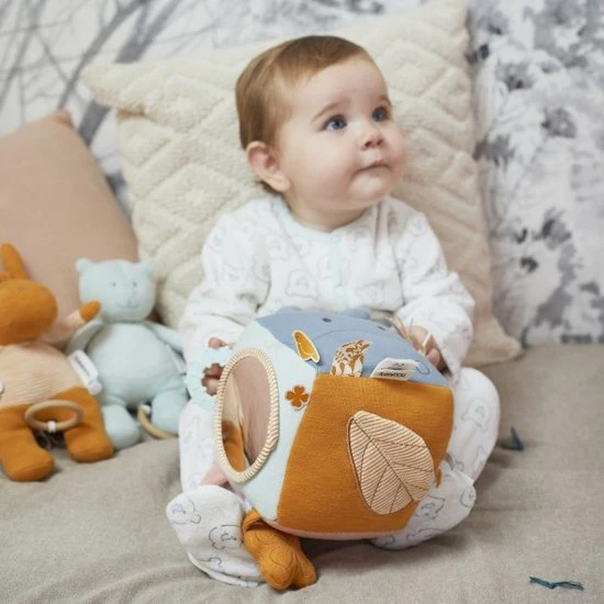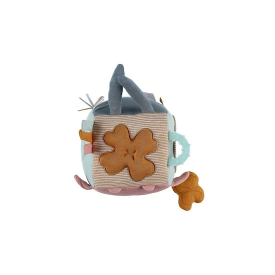 Le cube d’activités de la collection Iconiques a été conçu pour favoriser la coordination entre l’œil et la main, il développe également les capacités motrices et deviendra très vite l’accessoire préféré des petits. Ce cube propose différentes activités à l’enfant.