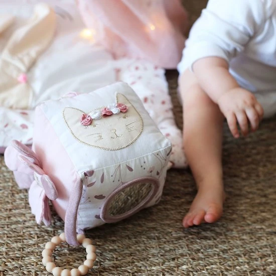 Ce Maxi Cube aux différentes textures(coton bio, lin, velours), et activités stimule le toucher, la vue et l’ouïe des bébés. De petites choses à attraper, un petit miroir pour se regarder, votre bébé n’aura que l’embarras du choix sur son activité du jour.