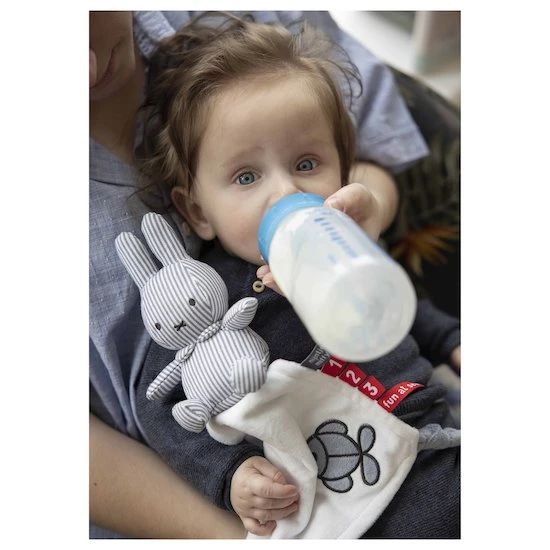 Ce doudou Miffy est composé d’un petit lapin Miffy tenant dans ses pattes un doudou tout et facile à attraper grâce aux nœuds à ses extrémités.