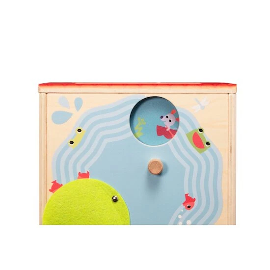 Ce cube d’activités en bois offre une masse d’activités sur chaque face. Paulette, la poulette, plonge dans l’étang, se repose dans son nid douillet ou part explorer les faces magnifiquement illustrées du cube. Les sens, les petits doigts, le cerveau et l’imagination sont défiés et stimulés.