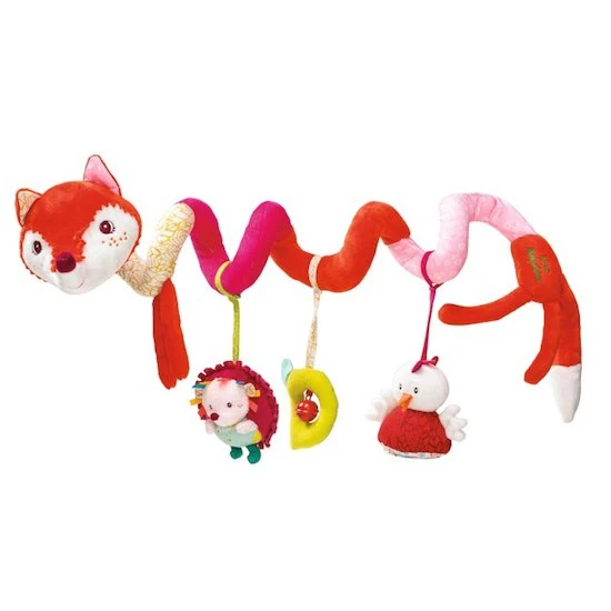 Alice la renarde s’enroule autour du parc, de la poussette ou du siège bébé et tend toutes ses activités pour éveiller bébé: miroir, pouet et petite clochette!