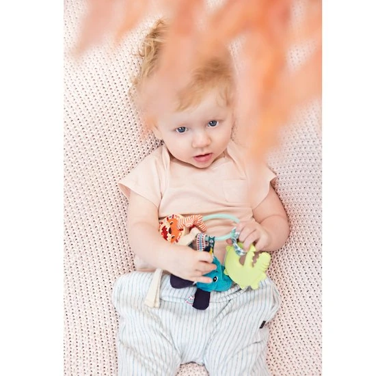 Une variété de matériaux, de couleurs et de sons font de ce trousseau de clés un véritable voyage de découverte pour les petits.