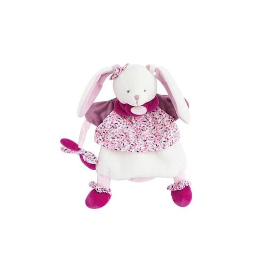 Magnifique marionnette doudou Lapin Cerise, très douce et raffinée avec ses belles matières, ses détails travaillés et ses jolis imprimés roses. Idéale pour raconter des histoire tout en tendresse en stimulant les sens et l’imagination, dès la naissance. lavable à 30°.