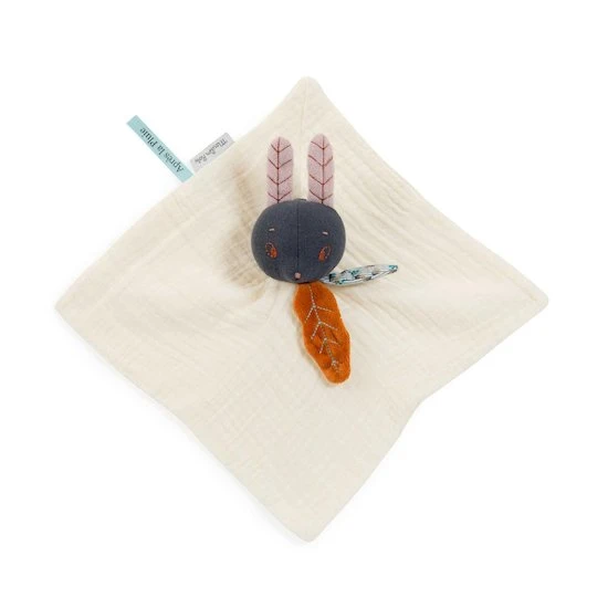 Ce doudou plat carré reprend les tons de la collection Après la pluie de Moulin Roty.
