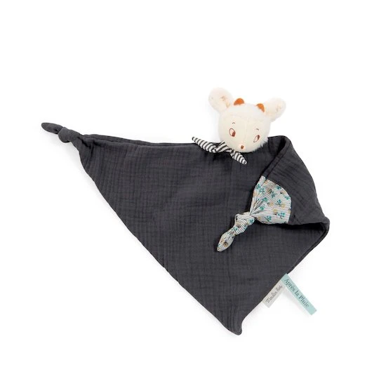 Ce doudou plat carré reprend les tons de la collection Après la pluie de Moulin Roty.