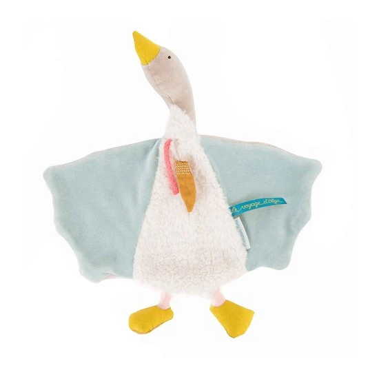 - Le corps en fourrure toute douce d’Olga l’oie sauvage et ses grandes ailes en éponge velours envelopperont bébé de tendresse.