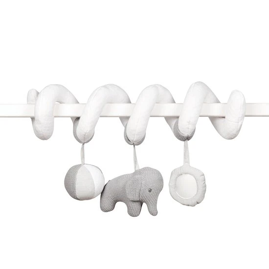 La spirale, avec sa petite peluche et ses diverses activités, invite au jeu. Elle est facilement attachable au lit, au siège bébé, …Lavable à 30 ° C.