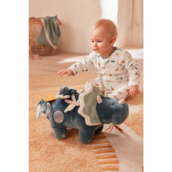 - Nombreuses activités : hochet à billes multicolores, miroir, jouets de dentition pour soulager les poussées dentaires, feuilles en papier froissé.