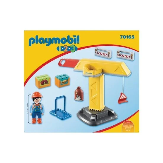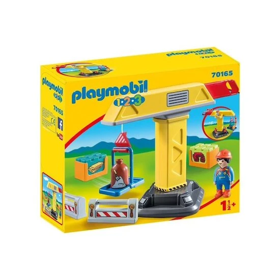 Avec Playmobil 1.2.3, la grue de chantier, votre enfant imagine et crée ses premières histoires grâce à un nouveau personnage. L’ouvrier en bâtiment charge les matériaux de construction. Aidé d’une grue qui pivote et un lève-palettes, il pourra avancer plus rapidement dans son chantier.