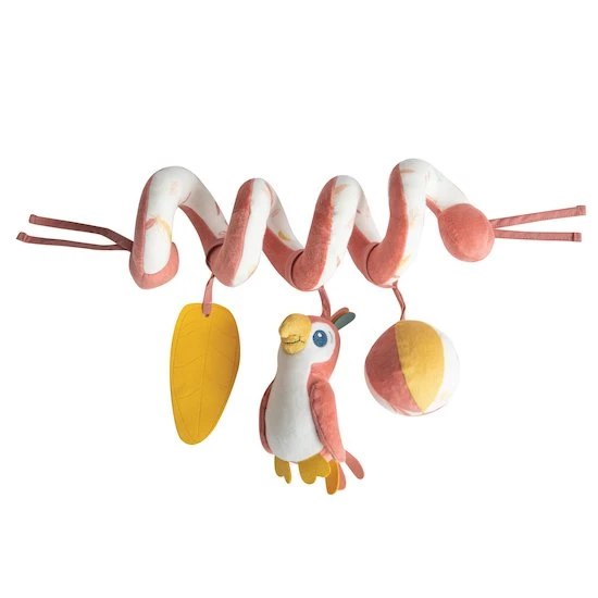 - La spirale s’accroche facilement sur un landau, un siège-auto, un lit bébé etc…